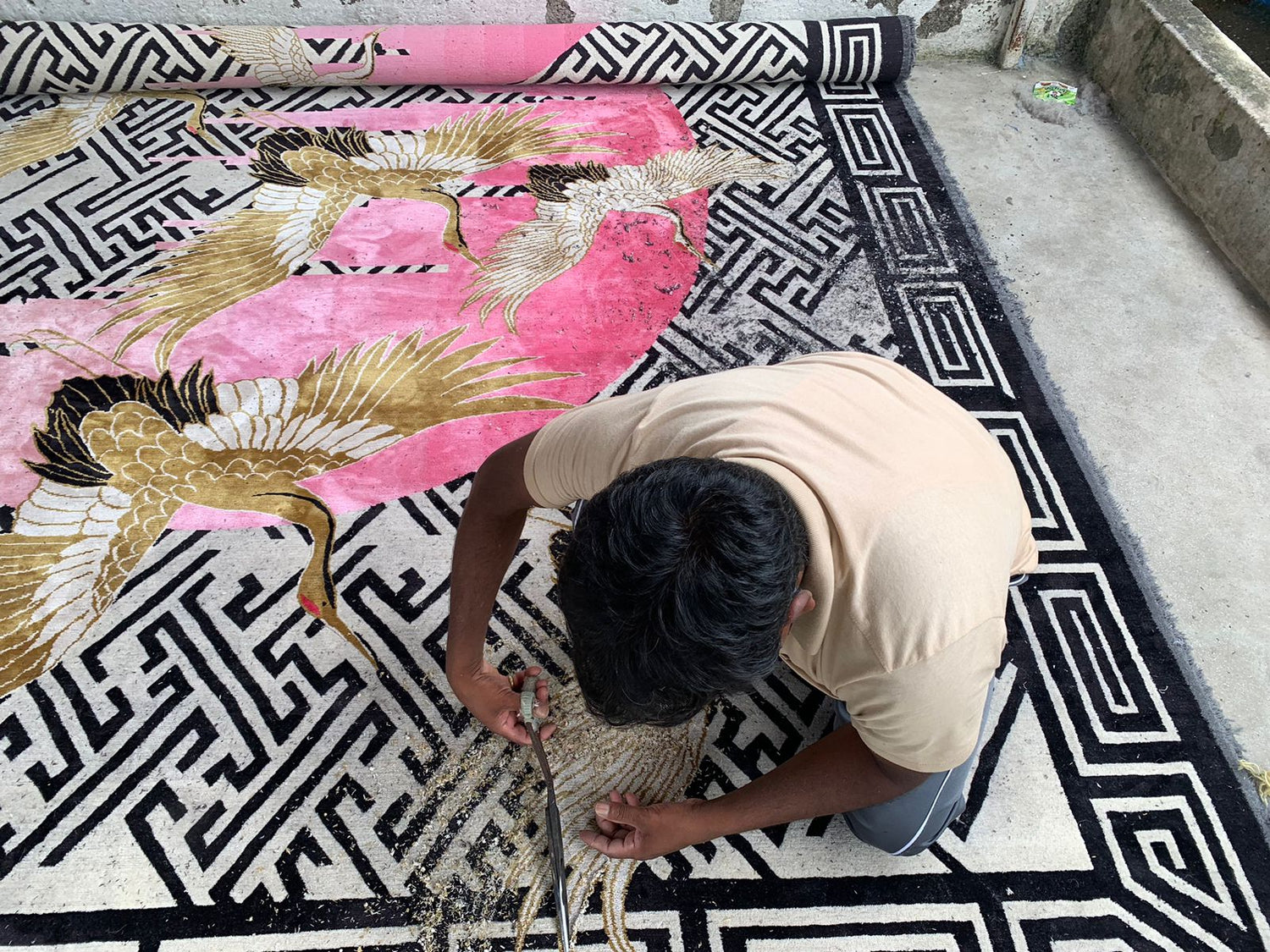 If you have placed an order, your account manager will be able to advise what stage of production your rug is at, sharing progress throughout the rug’s journey, which you can share with your client.